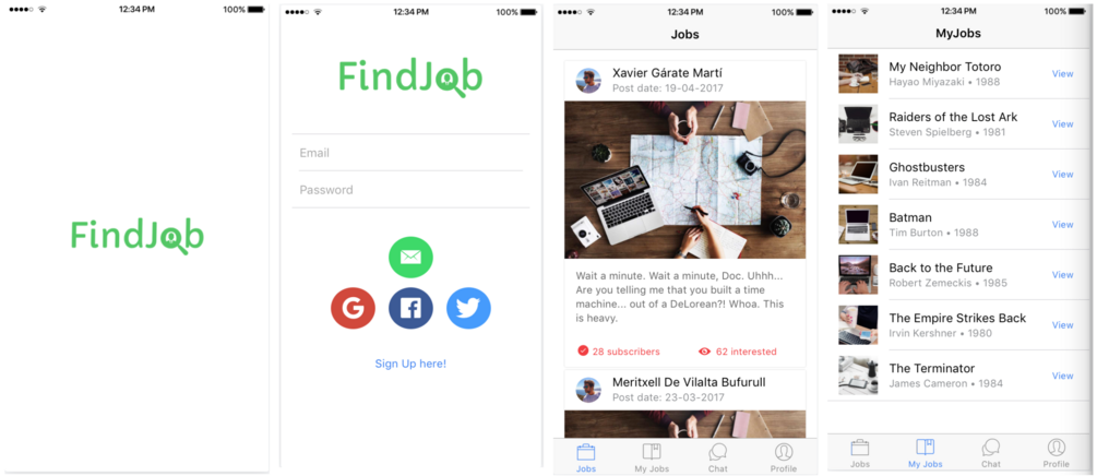 This application will help you to start an application from scratch. In this project you will find the logins with email, facebook, google and twitter very easily. You just have to download the project and start working with it. This application is set in a job search environment. I hope it helps you and that you can make some fantastic applications from this base.